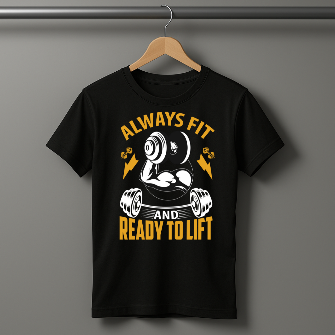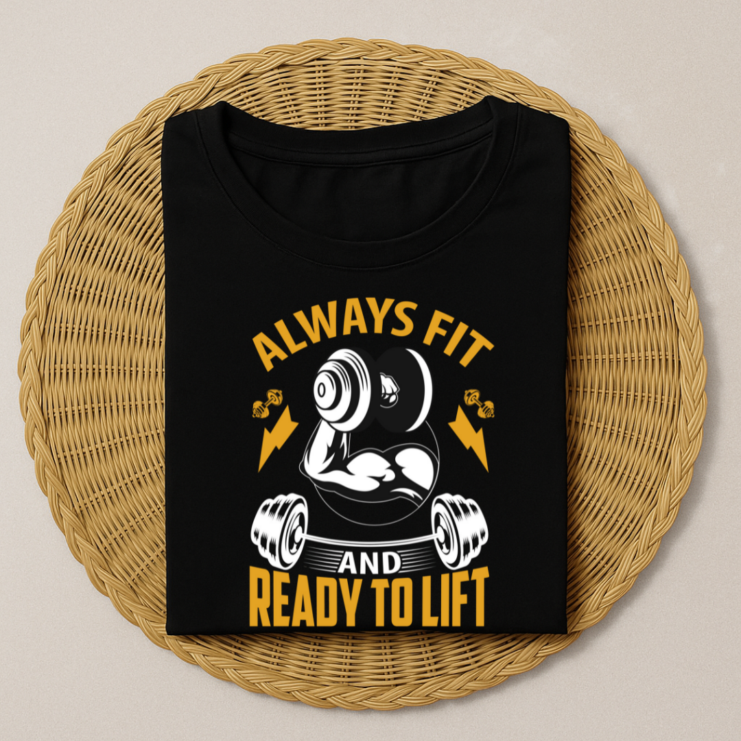 - Motivational Design: Featuring the empowering message "Always Fit And Ready To Lift" with a sleek barbell graphic, this T-shirt is designed to inspire your workouts and showcase your dedication to fitness.