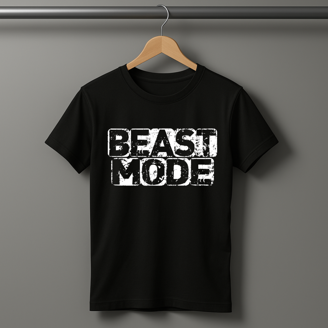 - Motivational Design: Featuring the empowering message "Beast mode" with a sleek barbell graphic, this T-shirt is designed to inspire your workouts and showcase your dedication to fitness.
