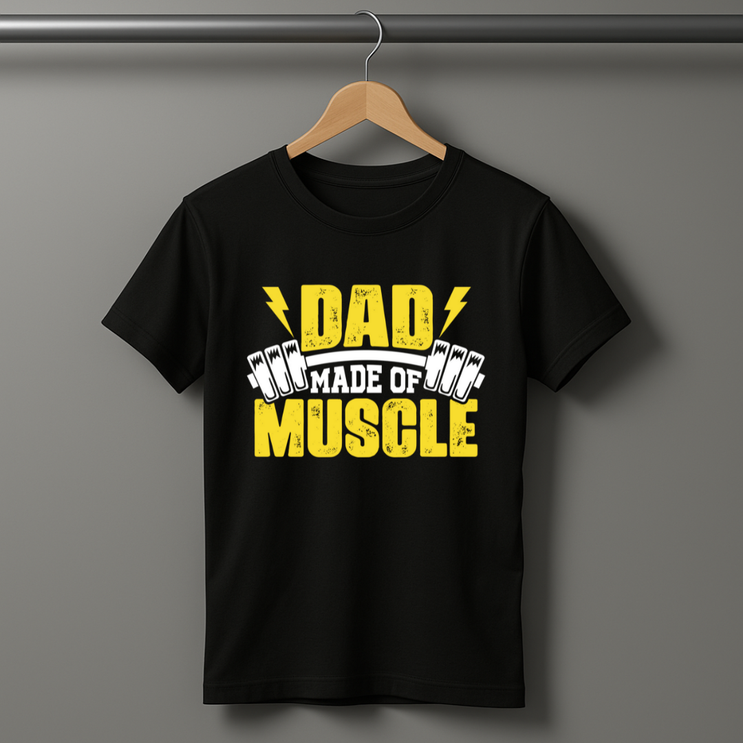 - Motivational Design: Featuring the empowering message "Dad Made Of Muscle" with a sleek barbell graphic, this T-shirt is designed to inspire your workouts and showcase your dedication to fitness.
