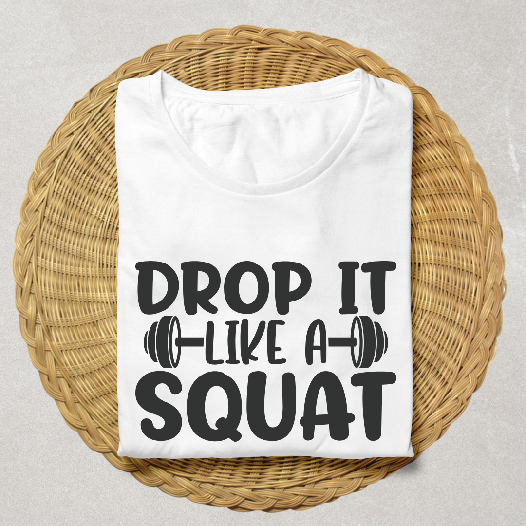 - Motivational Design: Featuring the empowering message "Drop It Like A Squat" with a sleek barbell graphic, this T-shirt is designed to inspire your workouts and showcase your dedication to fitness.